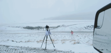 很多時候沒有人幫他,他就自己調整照相機的角度和時間。無論如何都要為妻子拍一張粉紅色裙子的照片。。