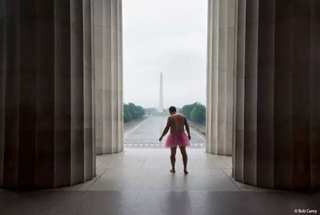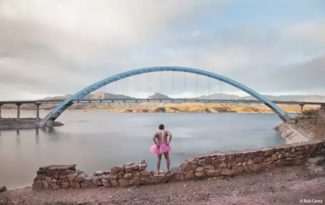 看到妻子一掃生病的陰霾,開心的樣子Bob自己也很高興。於是從此以後,Bob每到一個地方,都會脫掉上衣,換上這條粉色的小裙子,然後拍照給妻子。