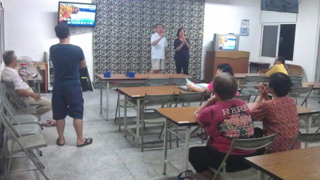 水頭社區邱理事、媽媽教室黃副班長夫婦,伉儷情深合唱"四季紅",來賓掌聲鼓勵,啪…