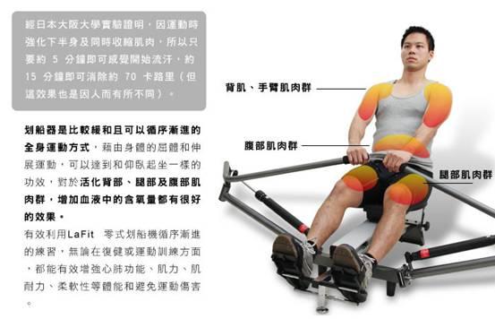 如果想要鍛鍊更好身材及其他部位,可藉由划船健身器,以室內划船的方式,鍛練手臂、腹部及腿部肌群,一個划船動作能達到多重肌肉群訓練效果。所以休傑克曼每周至少做兩次划船健身器,鍛鍊心肺功能、肌力與肌耐力。