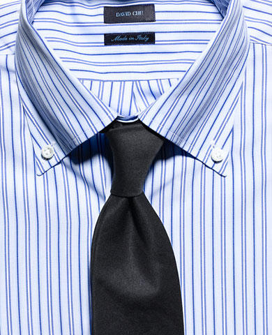 簡單大方的斜條紋領帶不僅能洗去過份嚴肅的氣息,同時不失專業感,因此成了許多商務人士的愛用款,在挑選條紋領帶與襯衫做搭配時,領帶色彩之一最好與襯衫顏色或西裝外套顏色相近較不容易出錯。
